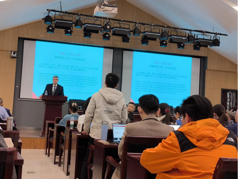 教育领域被柯伟林教授视为“中美关系的永恒主题”。他通过留美幼童、清华大学庚款办学等案例,阐释教育合作如何推动两国思想与技术的交流。其著作《顶尖大学的条件》(Empires of Ideas: Creating the Modern University from Germany to America to China)以南京大学北大楼为封面,彰显对中美学术联结的重视。柯伟林教授特别提到清华大学苏世民书院、南京大学中美文化研究中心及哈佛上海中心等跨国合作的实践,提出“教育不应该受到政治方面的影响”“教育与政治是相互分离的领域”。最后,柯伟林教授还展示了胡适在中国赠送的哈佛办学三百周年纪念石碑上关于教育事业意义的观点,进一步强调文化与学术对中美两国的意义。